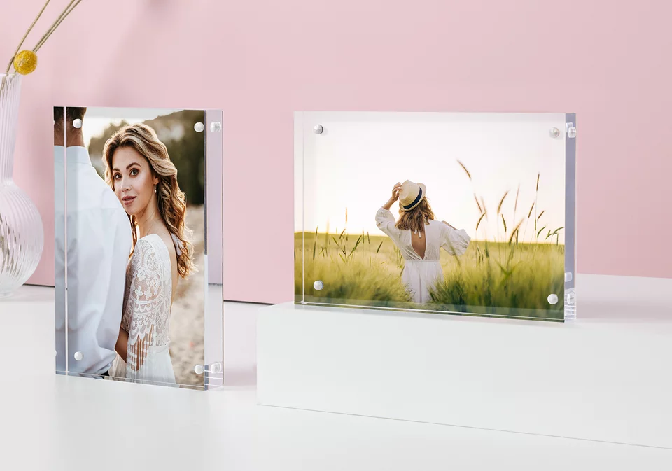 The Photo Block is an elegant photo display made of solid acrylic, which integrates itself in any room thanks to its simple design. Due to the width of the Photo Block, the colours of the inserted photo are reflected on the sides depending on the viewing angle. With the Photo Block you receive a Photo Print in FUJIFILM Silk paper. The magnetic plate attached behind the Photo Block allows for quick replacement.